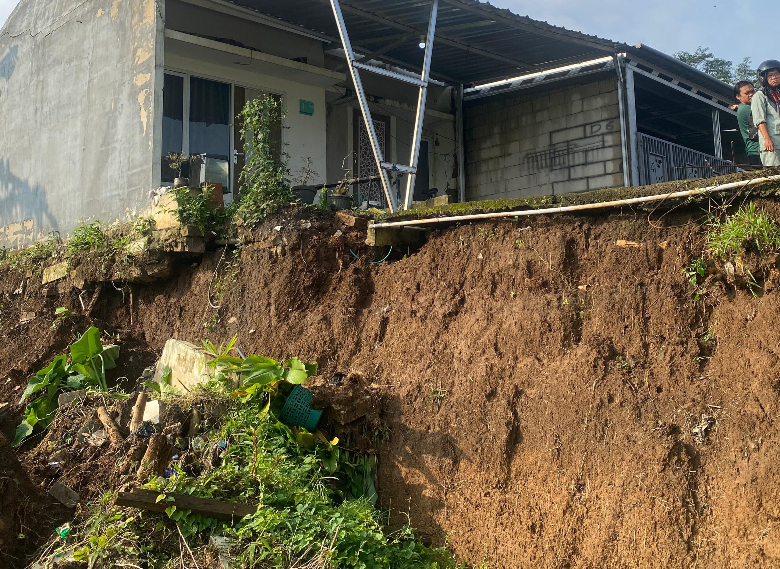 Akibatnya, struktur tanah mengalami penurunan drastis hingga menyeret sebagian badan jalan dan merusak fondasi rumah warga yang berada di bibir tebing buatan tersebut.