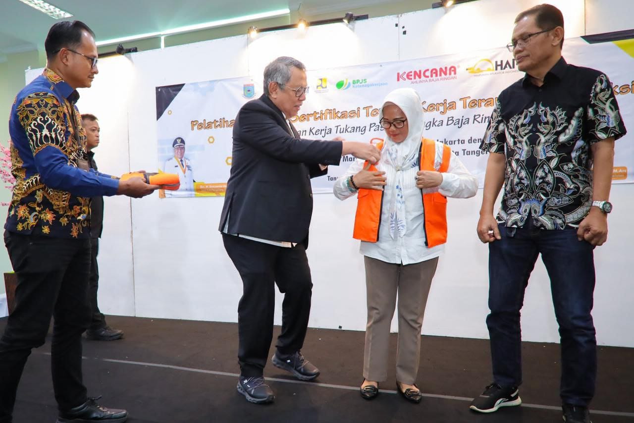 Kegiatan tersebut dibuka langsung oleh Wali Kota Tangerang Selatan Benyamin Davnie, yang secara simbolis memasangkan rompi peserta kepada perwakilan tenaga kerja konstruksi.