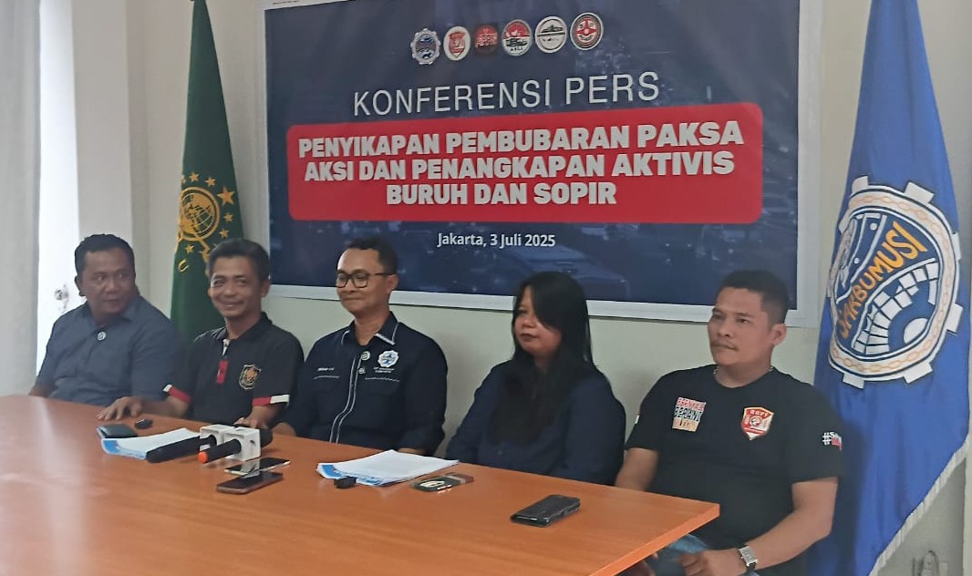 Jakarta, JNcom – Pembubaran Paksa Aksi dan Penangkapan Aktivis Buruh dan Sopir dalam Aksi Nasional Buruh Transportasi yang terjadi pada 2 Juli 2025 lalu menuai reaksi sejumlah organisasi buruh diantaranya Konfederasi SARBUMUSI, Rumah Berdaya Pengemudi Indonesia (RBPI), Aliansi Perjuangan Pengemudi Nusantata (APPN), Asosiasi Sopir Logistik Indonesia (ASLI), Konfederasi Sopir Logistik Indonedia (KSLI), dan Aliansi Pengemudi Angkutan Barang Indonesia (APABI).